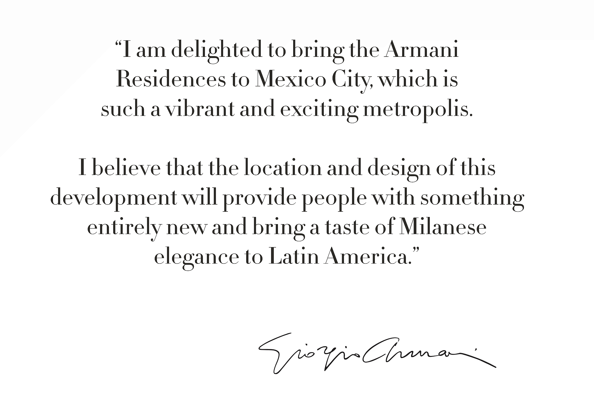 ARMANI RESIDENCES MASARYK MARKS THE INTRODUCTION OF ARMANI’S RESIDENTIAL PHILOSOPHY TO MEXICO CITY, ESTABLISHING A NEW BENCHMARK FOR UNDERSTATED LUXURY ALONG ONE OF POLANCO’S MOST DISTINGUISHED AVENUES. CONCEIVED AS AN INTIMATE, DESIGN-DRIVEN DEVELOPMENT, THE PROJECT UNITES ARCHITECTURE, CRAFTSMANSHIP, AND LIFESTYLE INTO A COHESIVE RESIDENTIAL EXPRESSION DEFINED BY DISCRETION, ELEGANCE, AND ENDURING VALUE.