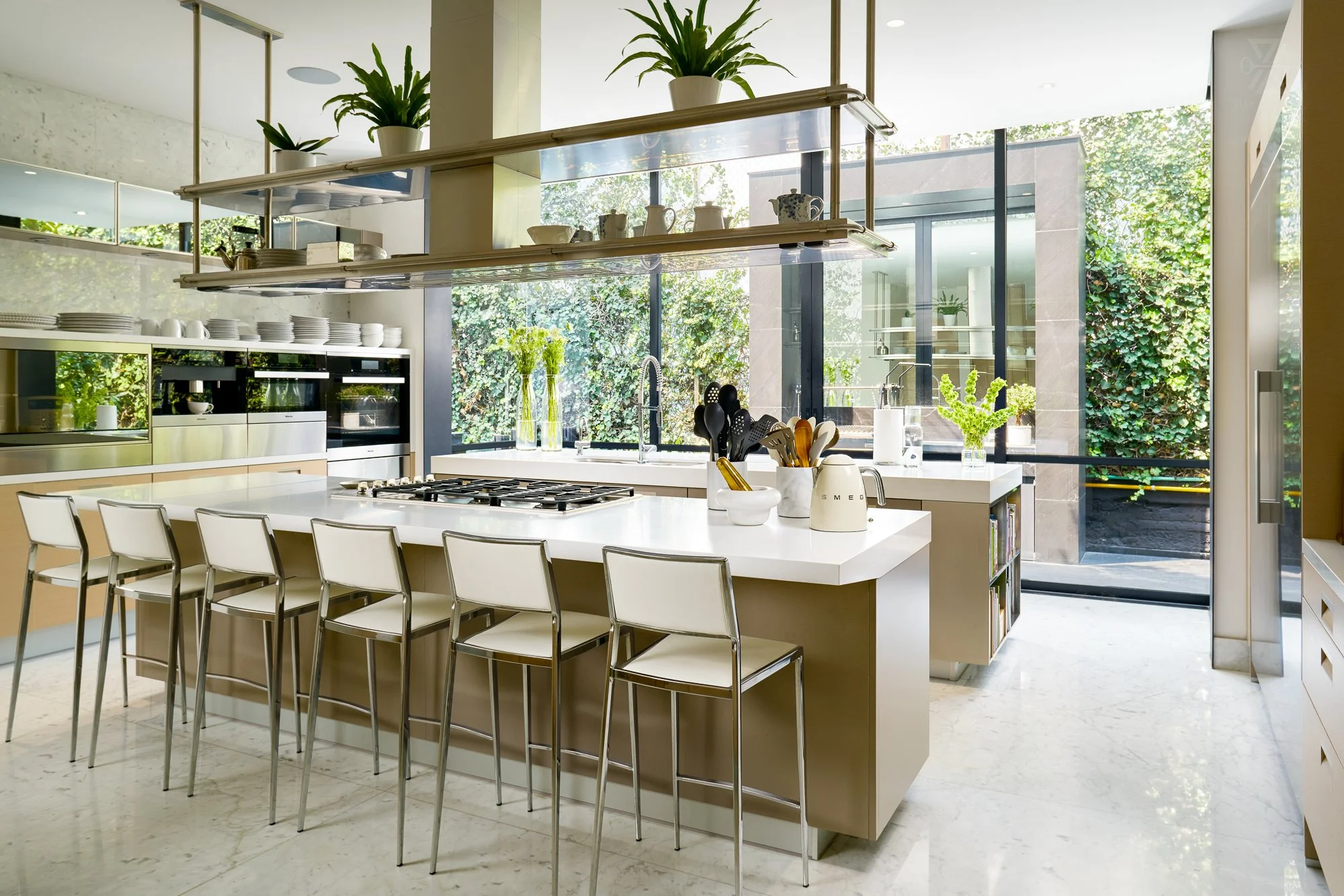 THE STATE-OF-THE-ART ITALIAN KITCHEN BY ARCLINEA, EQUIPPED WITH MIELE APPLIANCES AND A SUB-ZERO WINE CELLAR, IS BOTH FUNCTIONAL AND BEAUTIFULLY DESIGNED.