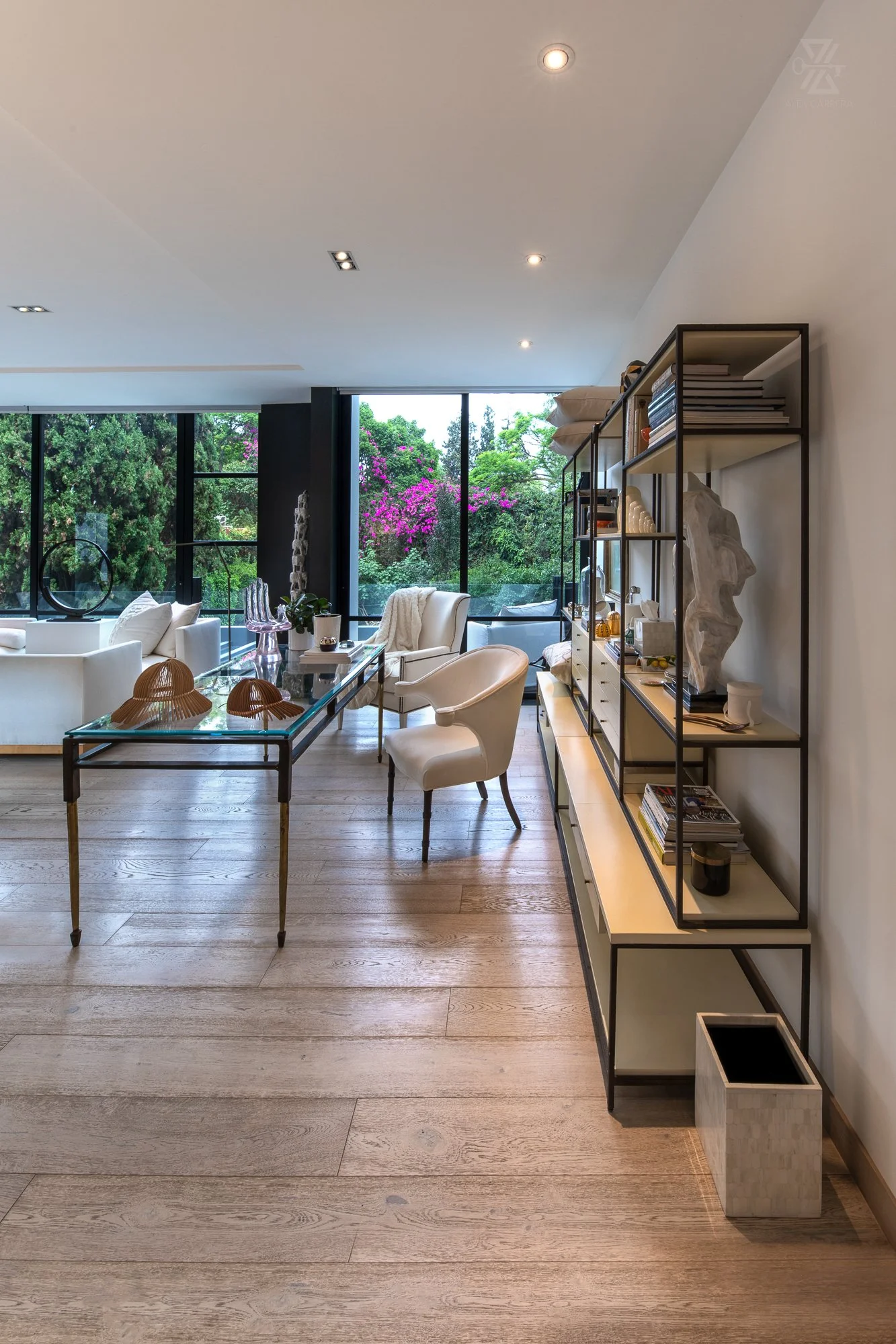 THE MAIN LEVEL EMBODIES SOPHISTICATION AND GRANDEUR. AT ITS CORE IS A LIBRARY, A SPACE THAT HAS GRACED THE COVER OF ARCHITECTURAL DIGEST MEXICO (NOVEMBER 2017).