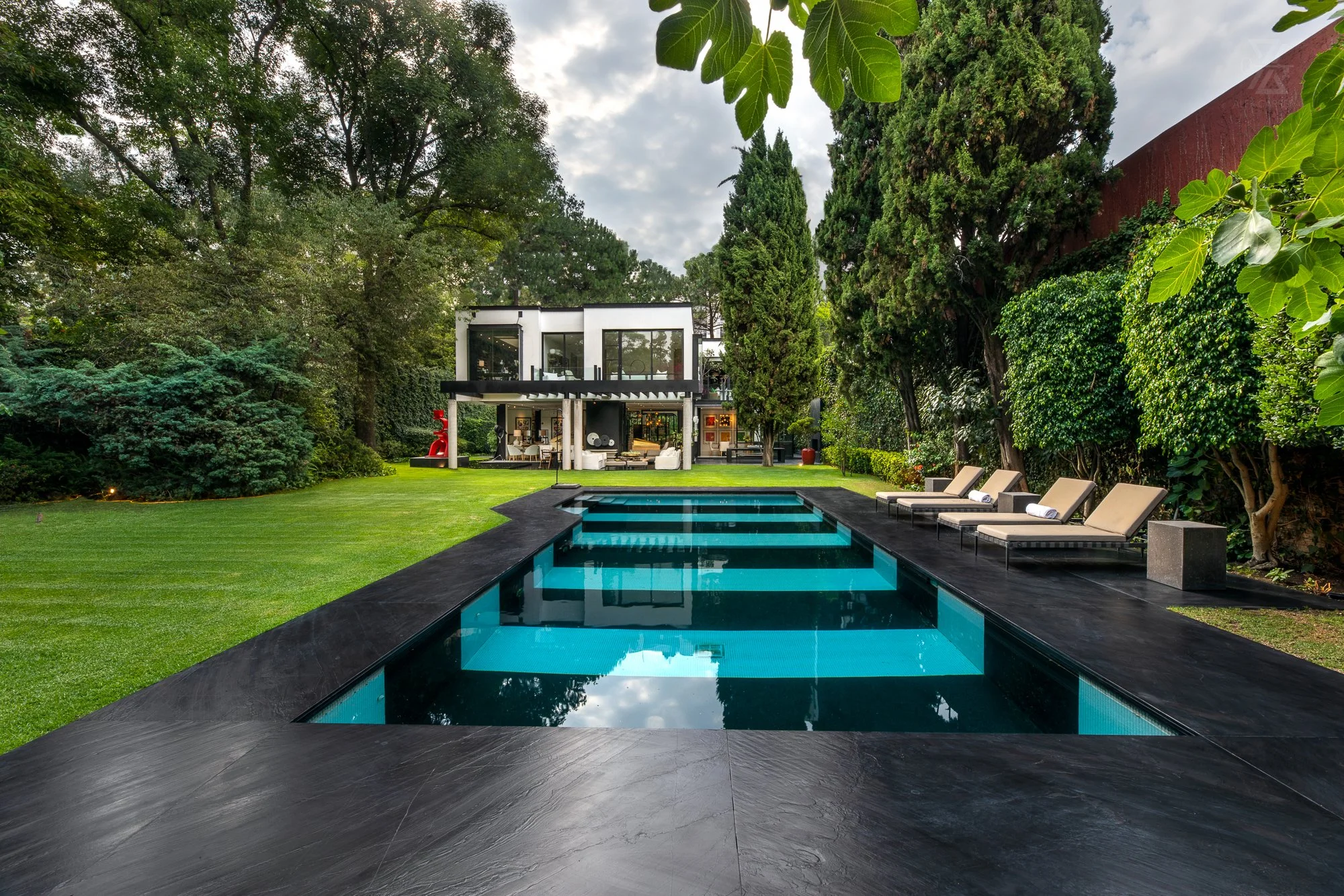 SET IN THE PRESTIGIOUS LOMAS DE CHAPULTEPEC NEIGHBORHOOD OF MEXICO CITY, THIS ARCHITECTURALLY SIGNIFICANT RESIDENCE, DESIGNED BY THE CELEBRATED ROY AZAR, SPANS FIVE SEMI-LEVELS OF EXQUISITE ARTISTRY.