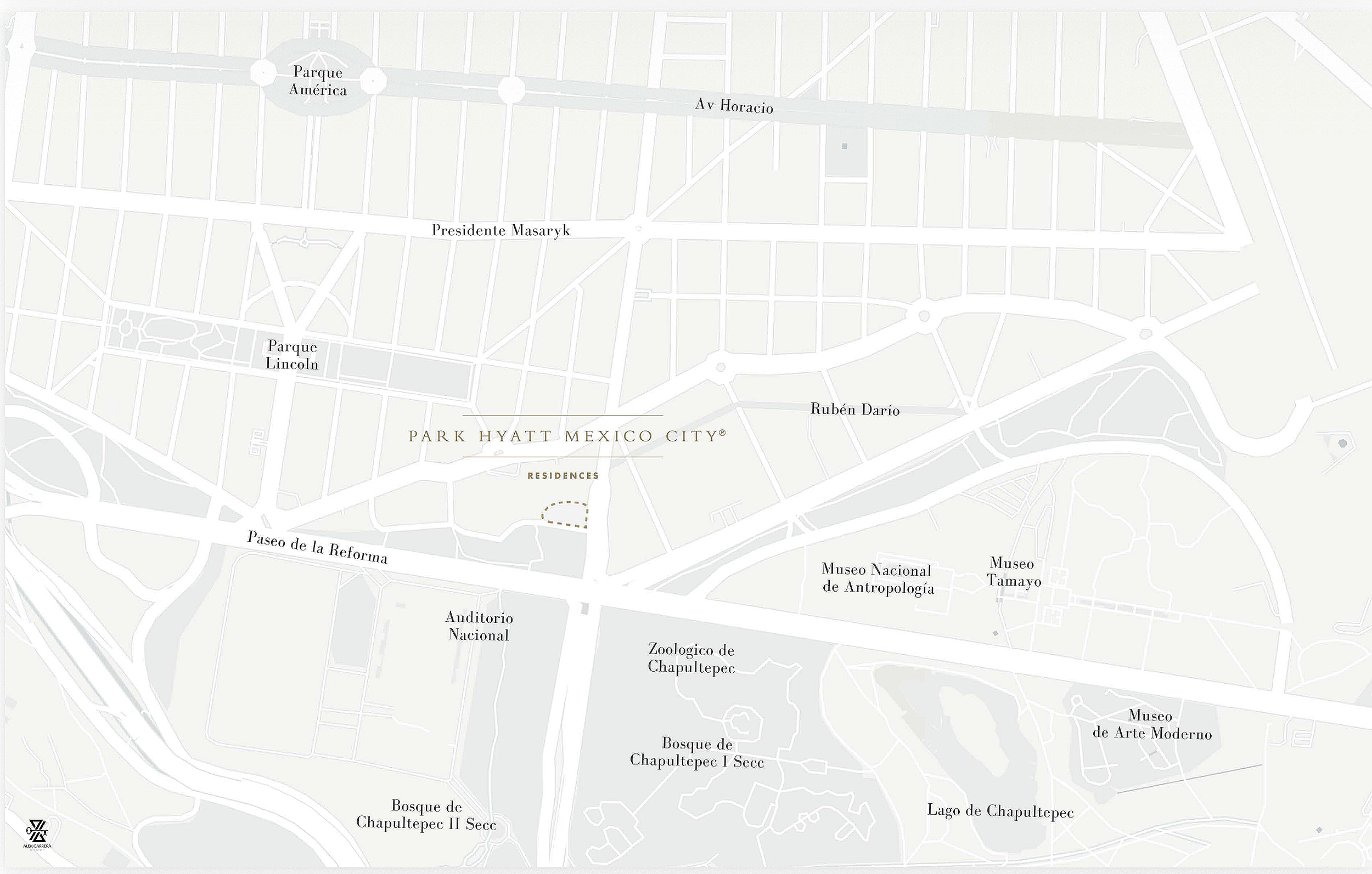 RISING ABOVE THE EMERALD CANOPY OF BOSQUE DE CHAPULTEPEC, IT STANDS AS AN ARCHITECTURAL LANDMARK WHERE DISCRETION, ARTISTRY, AND GLOBAL PRESTIGE CONVERGE IN THE HEART OF POLANCO, MEXICO’S MOST DISTINGUISHED NEIGHBORHOOD.