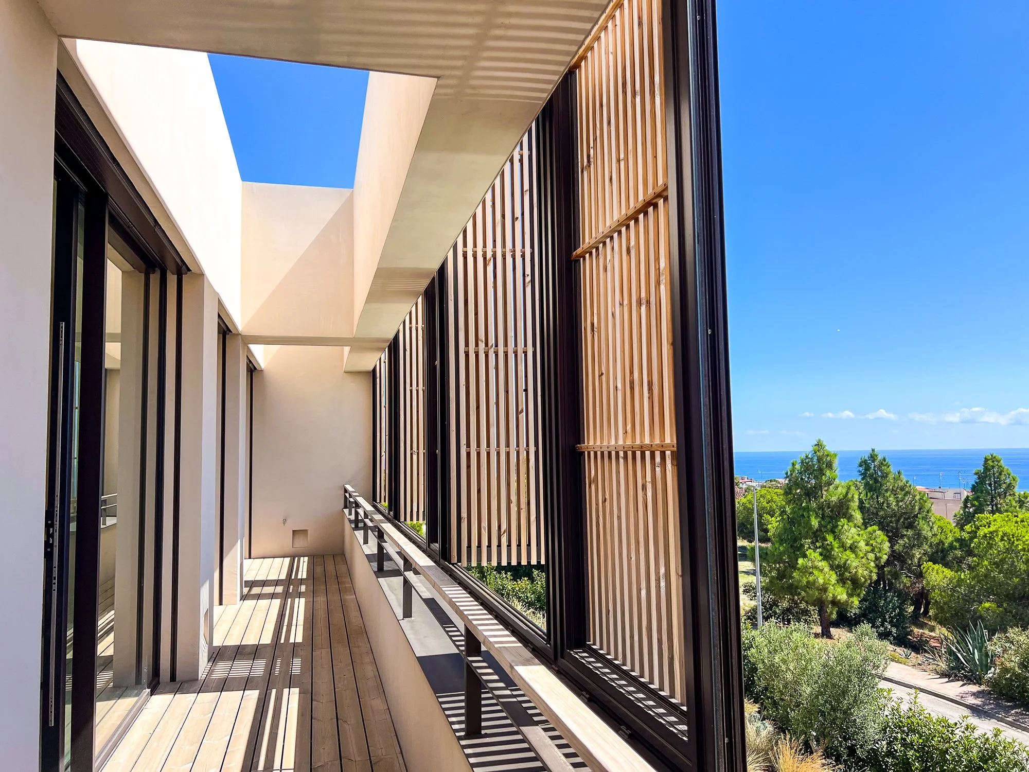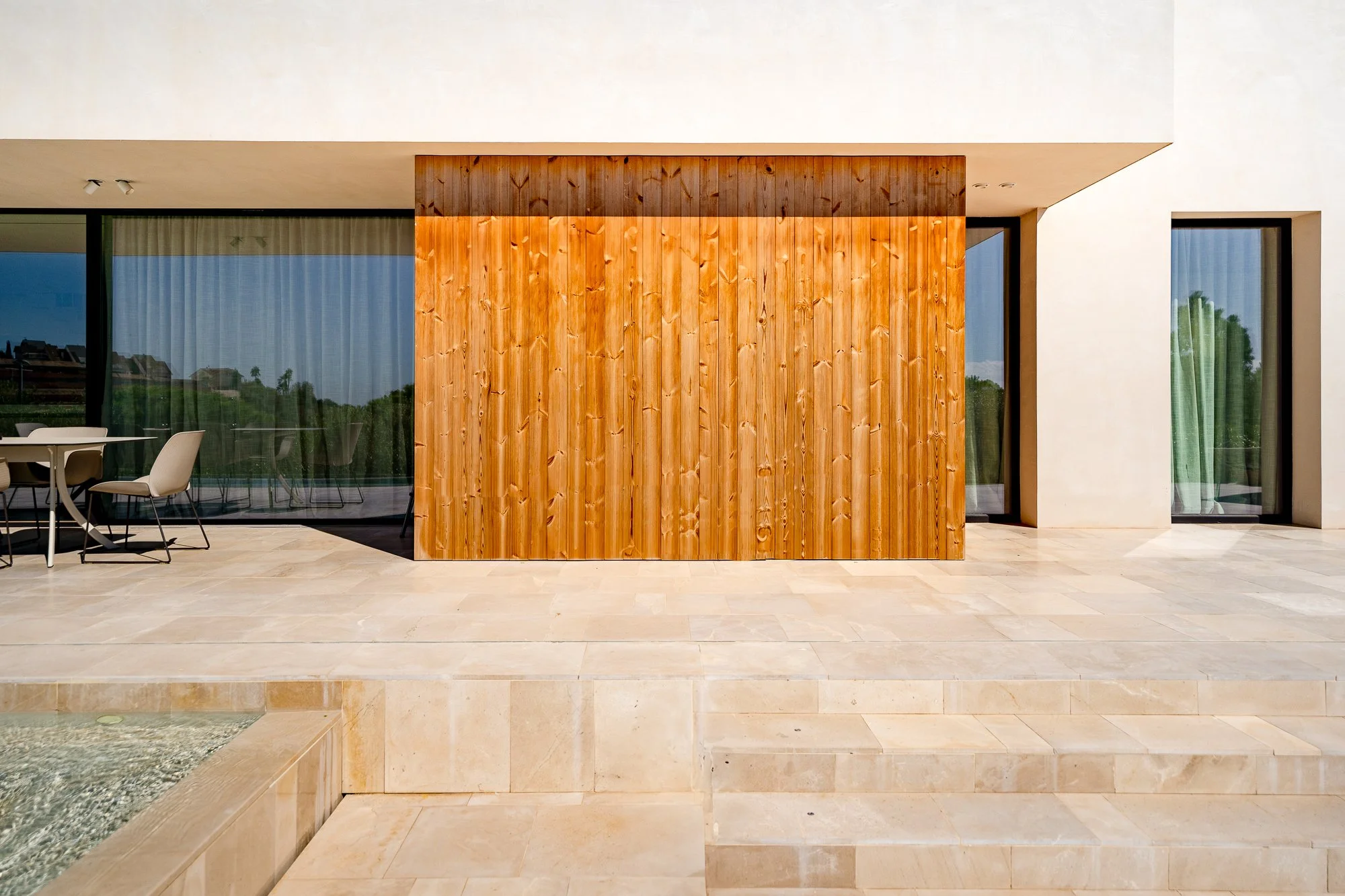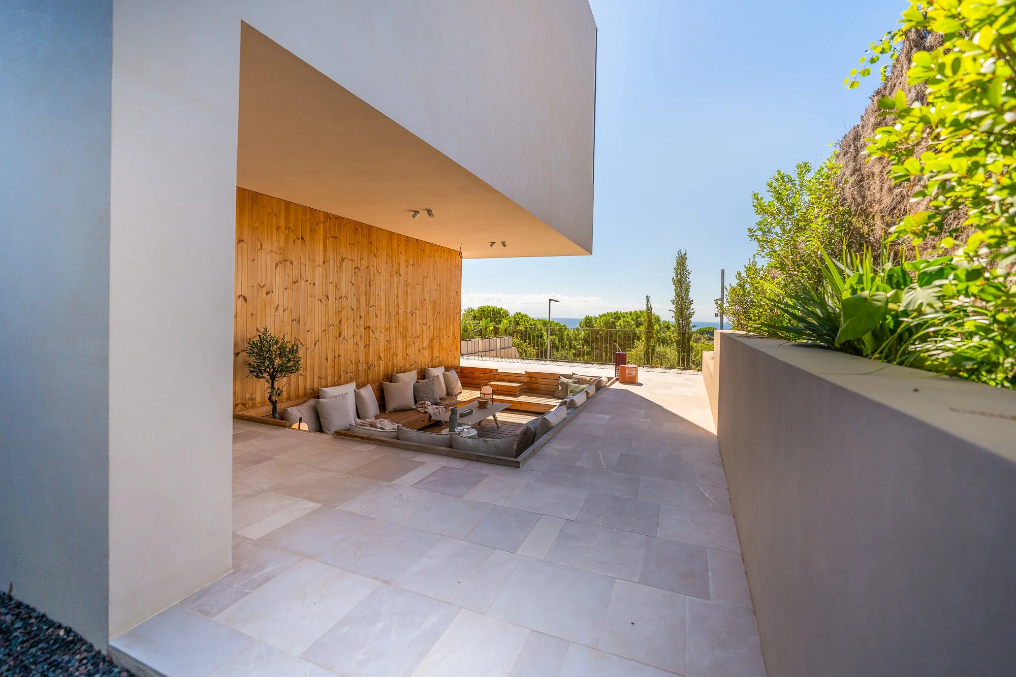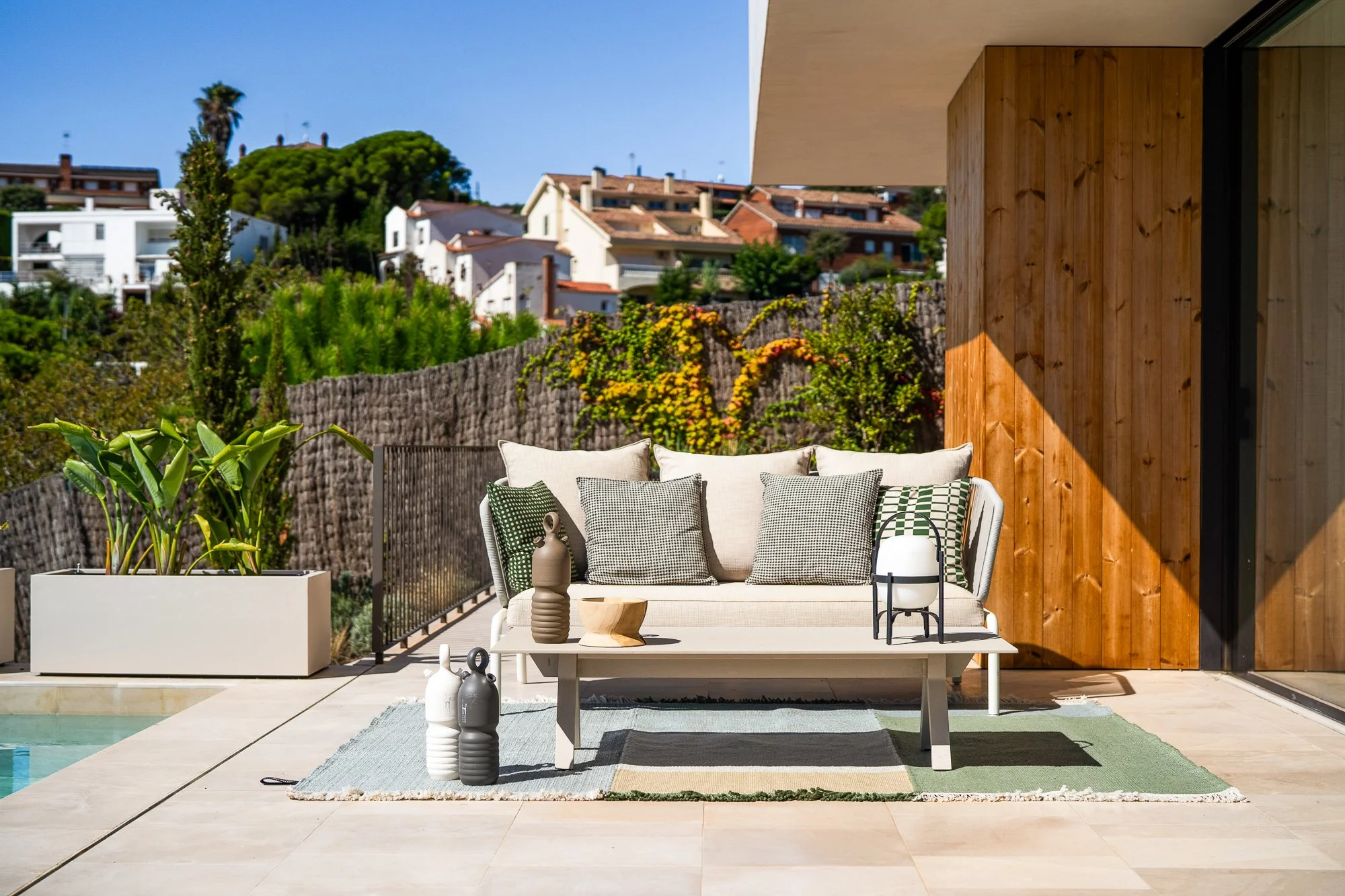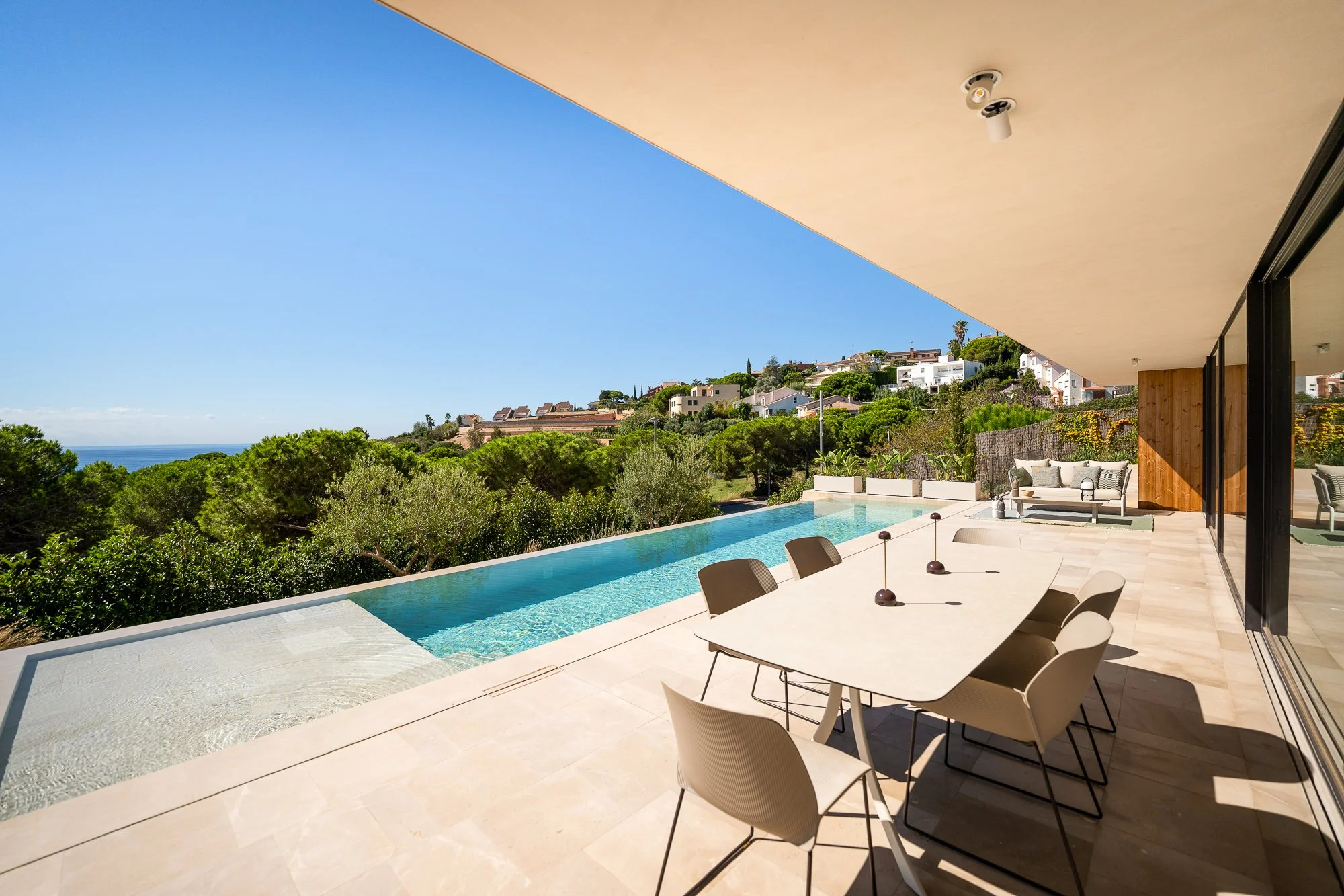 THE DESIGN ACHIEVES A FLUID CONNECTION BETWEEN INDOOR AND OUTDOOR SPACES, THANKS TO EXPANSIVE, OPEN AREAS FILLED WITH NATURAL LIGHT. THE LAYOUT REVOLVES AROUND A GRAND PORCH THAT LEADS TO AN INFINITY POOL, PERFECTLY POSITIONED TO TAKE ADVANTAGE OF THE REGION’S EXCEPTIONAL MARESME MICROCLIMATE.