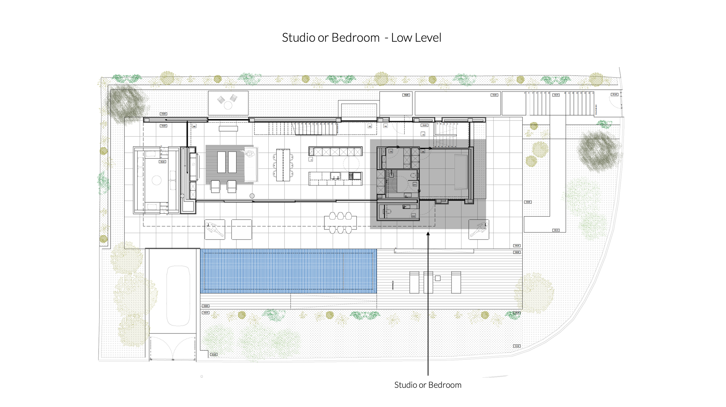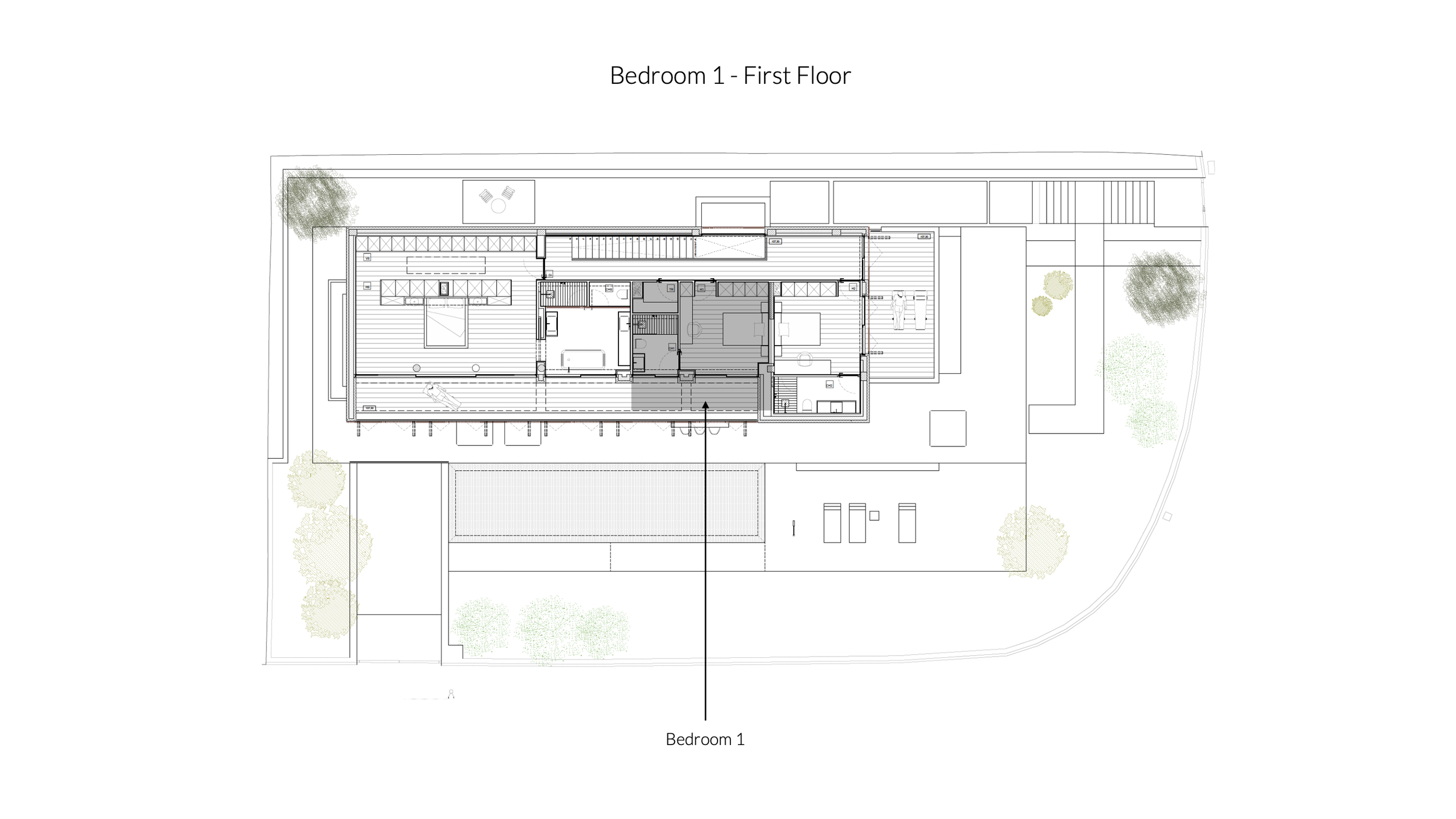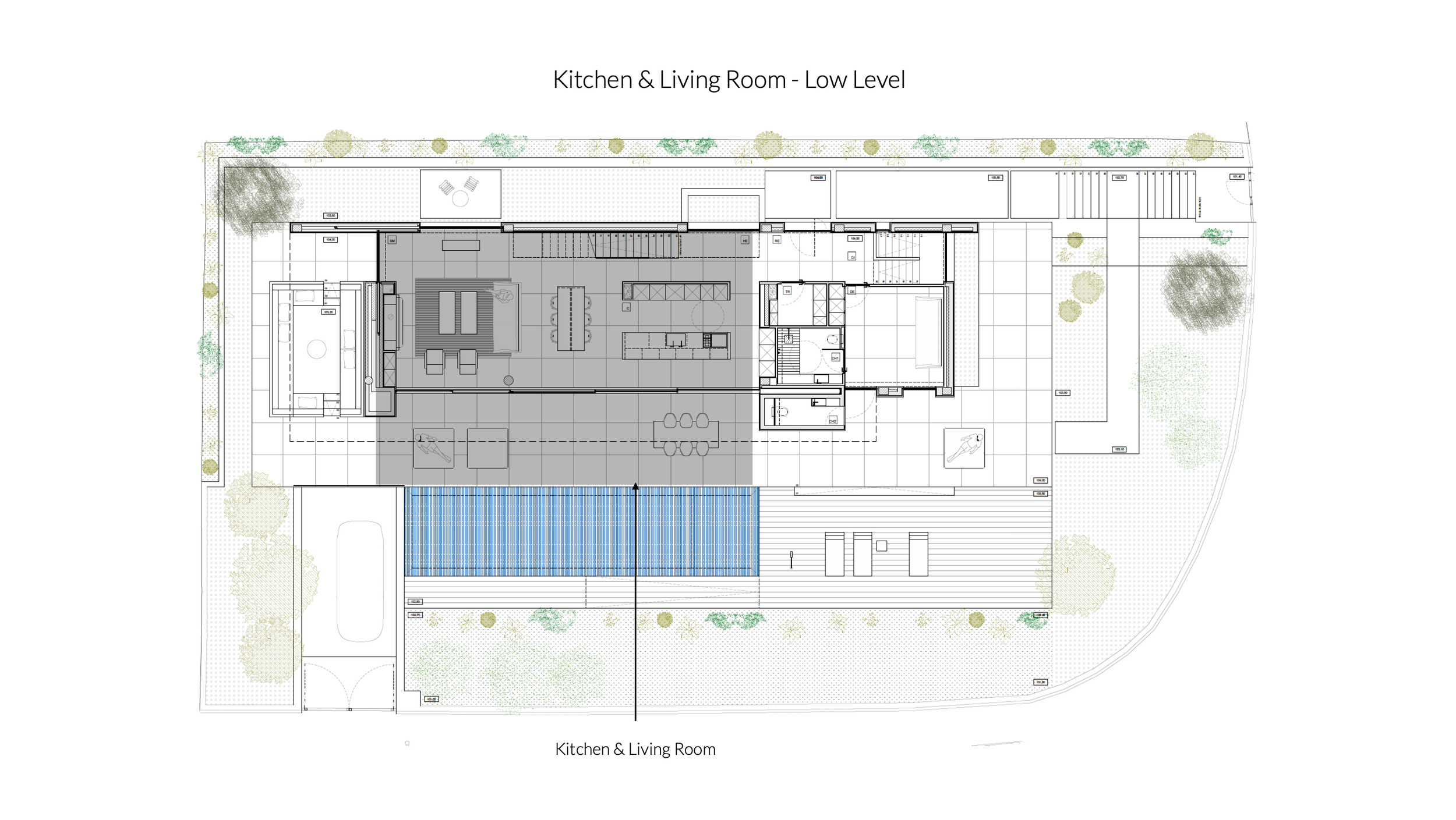 THIS LEVEL ALSO INCLUDES A PRIVATE OFFICE WITH ITS OWN BATHROOM, AS WELL AS AN ADDITIONAL OUTDOOR BATH AND SHOWER SERVING THE POOL AREA. A GLASS-RAILED STAIRCASE CONNECTS THE GROUND FLOOR WITH THE UPPER LEVEL, ADDING AN ELEMENT OF ARCHITECTURAL FINESSE.