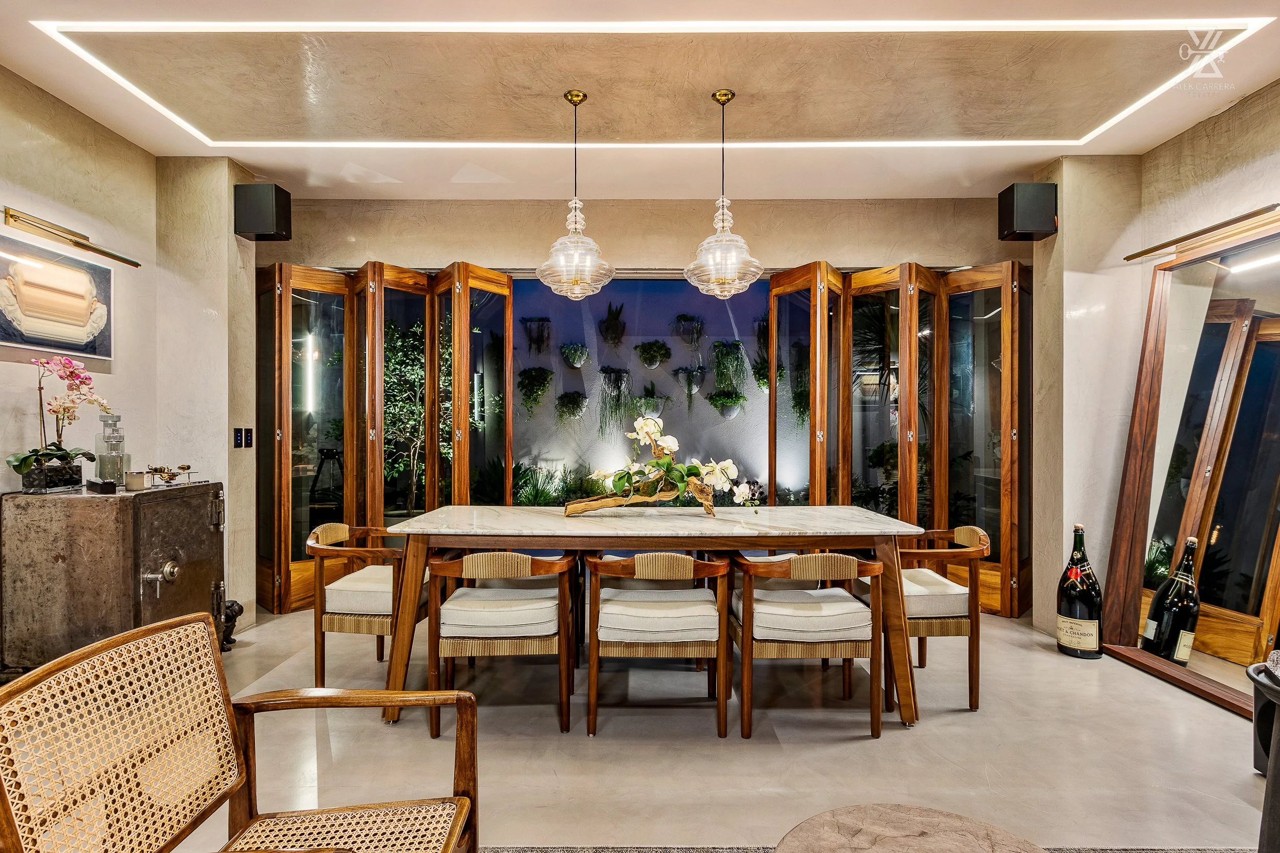 UPON ENTERING THE PENTHOUSE THROUGH ITS PRIVATE ELEVATOR, A GRACIOUS ENTRY FOYER WELCOMES YOU, DISPLAYING SOME OF MEXICO'S FINEST ART. THE TRIPLE-HEIGHT CEILINGS MAKE THIS SPACE FEEL LIKE YOU ARE WALKING INTO A SIZEABLE ARCHITECTURAL HOME, PROVIDING THE BEST IN SPACE AND PRIVACY.