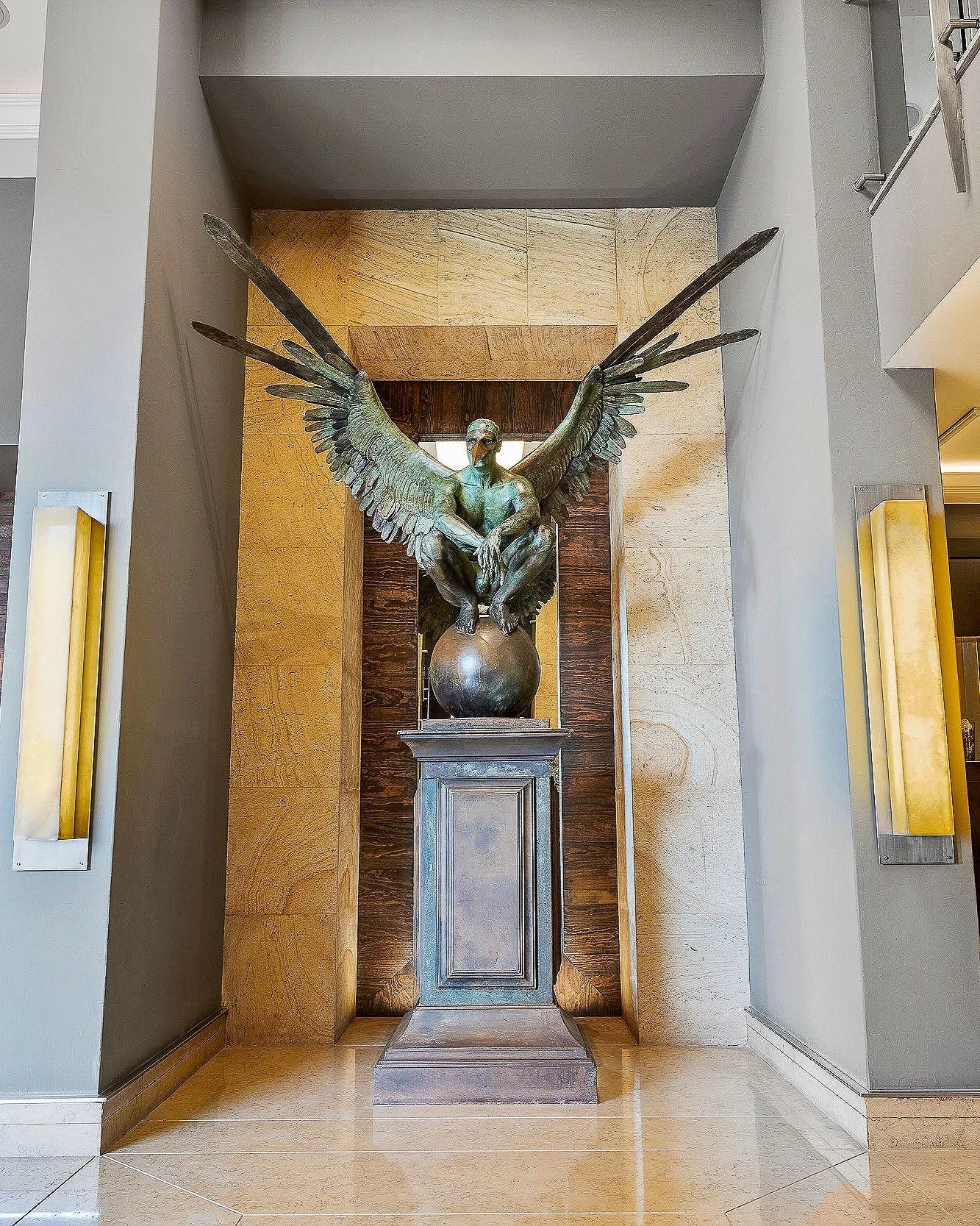 THE ENTRY GALLERY LEADS YOU THROUGH IMPRESSIVE OPENINGS WHERE THE COMBINATION OF MATERIALS THAT INCLUDE GLASS, METALS, STONES, AND WOOD CREATES THE PERFECT BALANCE.