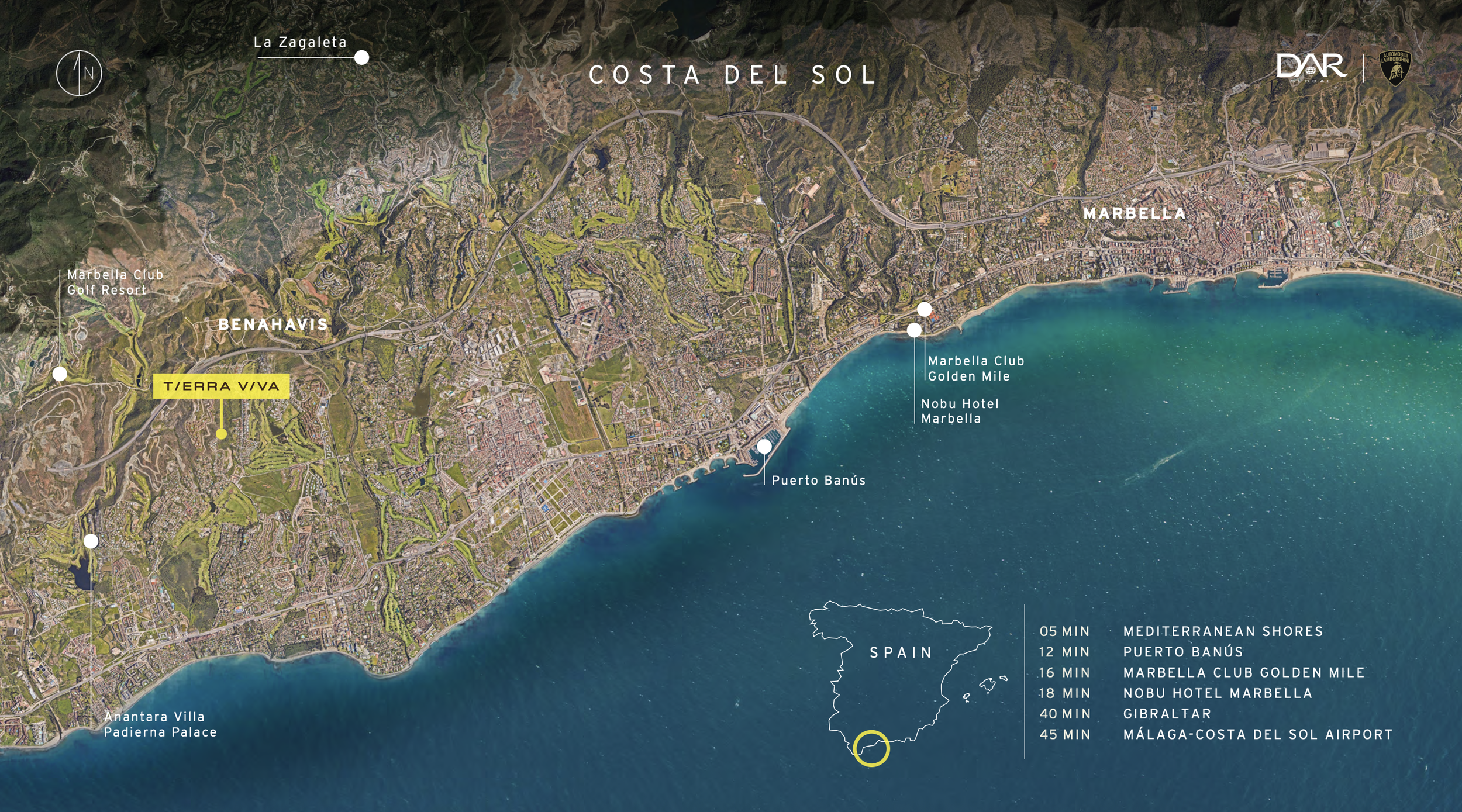 PERCHED HIGH IN THE HILLS OF BENAHAVÍS, OVERLOOKING THE SHIMMERING MEDITERRANEAN AND THE ICONIC SKYLINE OF MARBELLA, TIERRA VIVA BY AUTOMOBILI LAMBORGHINI IS ONE OF THE MOST EXTRAORDINARY RESIDENTIAL PROJECTS EVER INTRODUCED IN EUROPE.