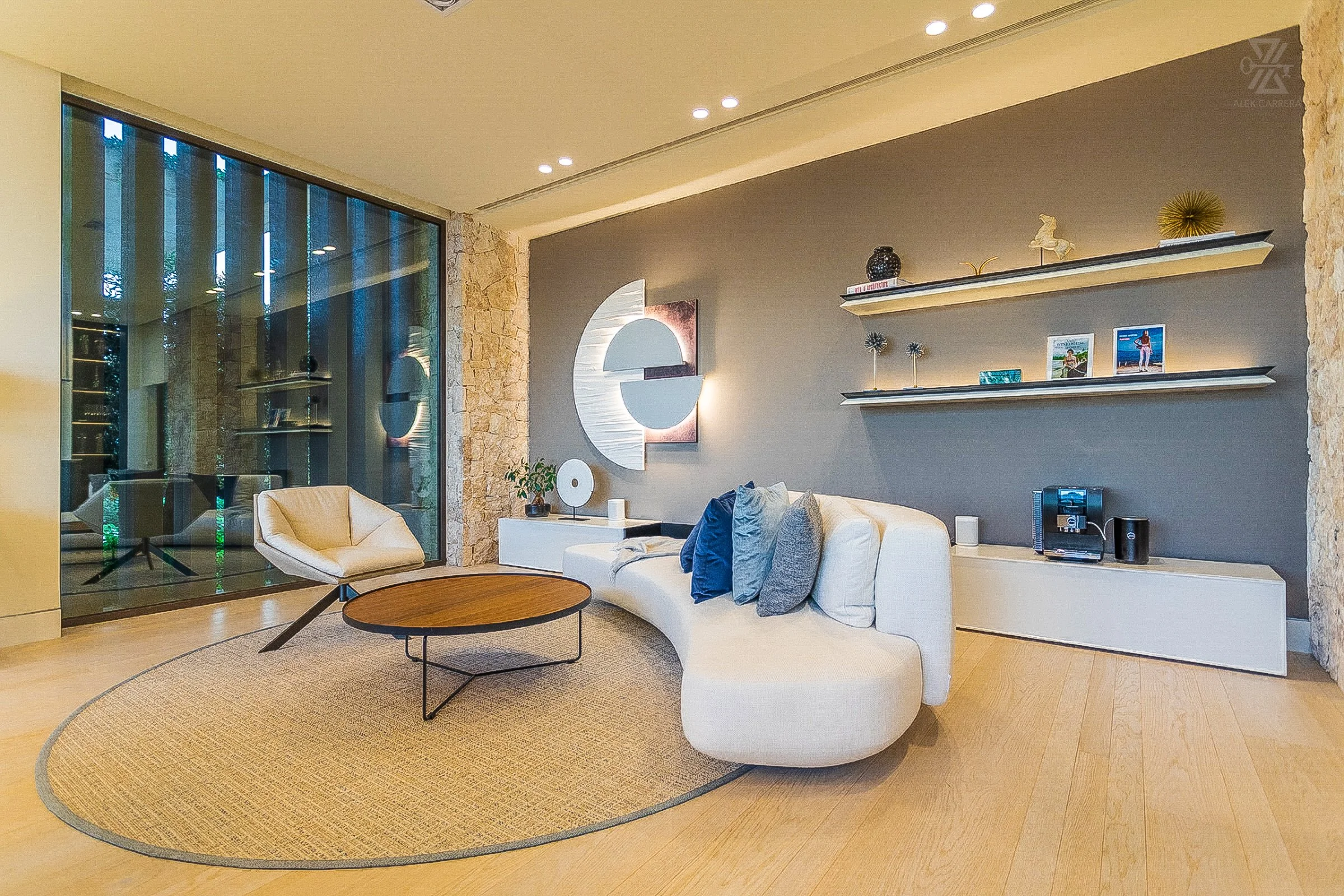 THE VILLA’S SLEEK DESIGN BLENDS EXPANSIVE OPEN SPACES WITH MODERN LUXURY, SEAMLESSLY MERGING THE SOPHISTICATED INTERIORS BY PEDRO PEÑA WITH THE REFINED OUTDOOR SPACES DESIGNED BY TOBAL ARQUITECTOS.