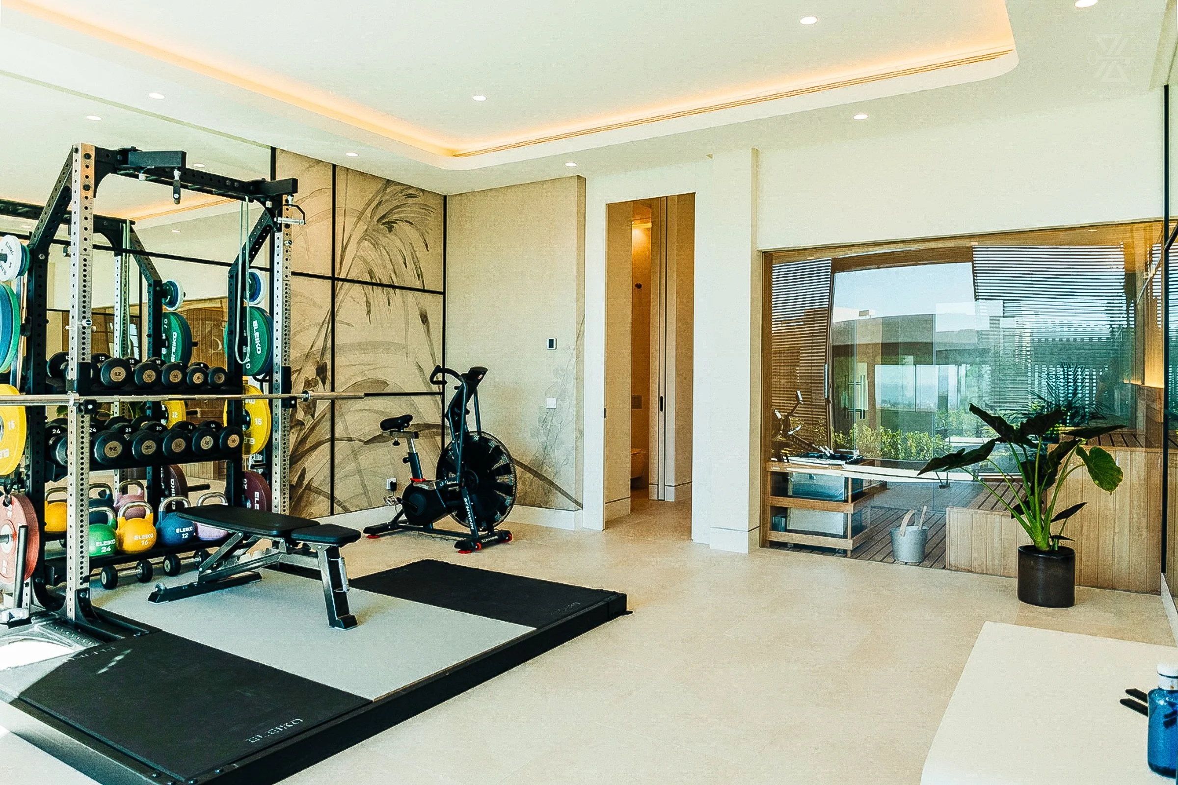 FOR RELAXATION AND RECREATION, THE VILLA OFFERS A PRIVATE SAUNA, A STATE-OF-THE-ART FITNESS ROOM, AND AN ENTERTAINMENT AREA EQUIPPED FOR ENJOYMENT. THE ENTERTAINMENT SPACE INCLUDES A BILLIARDS TABLE, A CHIC BAR, AND A COMFORTABLE TV LOUNGE, CREATING AN IDEAL SETTING FOR LEISURE AND SOCIALIZING.